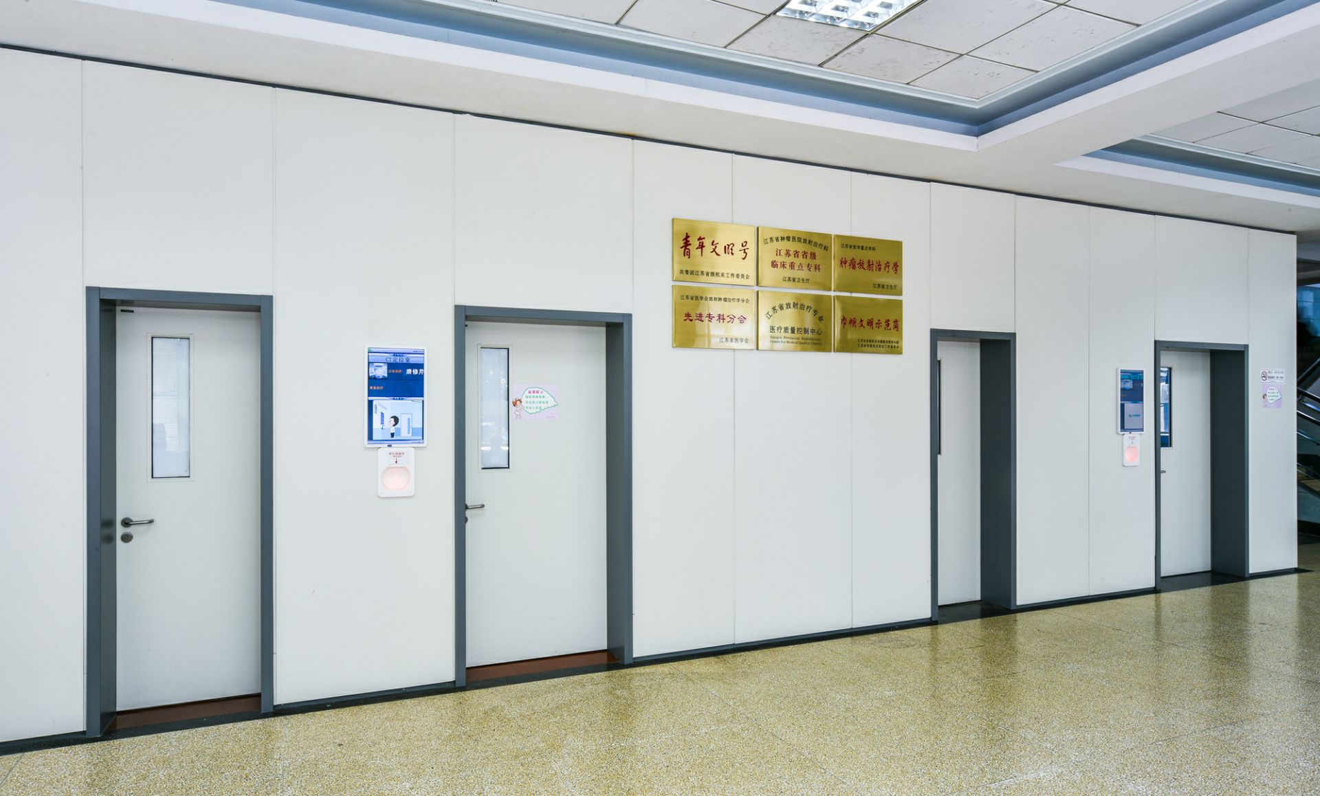 哈尔滨檀贤惠民医疗服务有限公司为江苏省肿瘤医院项目改造中提供医疗环境整体解决方案,其中包含金属门、金属隔断、金属墙板、金属吊顶等。打造高品质人性化的医疗空间。