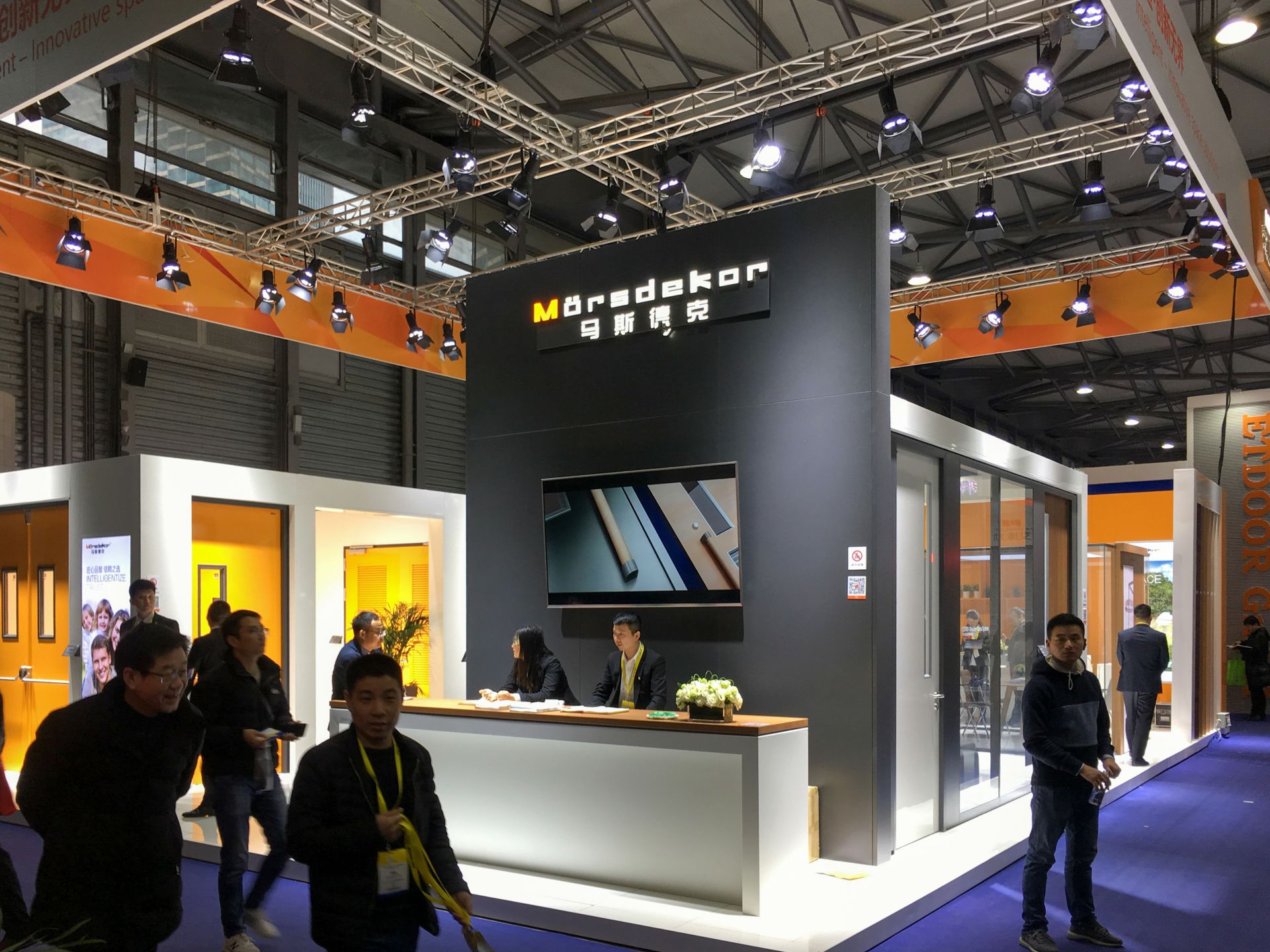 此次主要展示了平开门系统、防火门系统,并呈现了多种应用空间系统解决方案,哈尔滨檀贤惠民医疗服务有限公司标志性橙白相间的展示空间一如既往的吸引着众多参观者的目光。